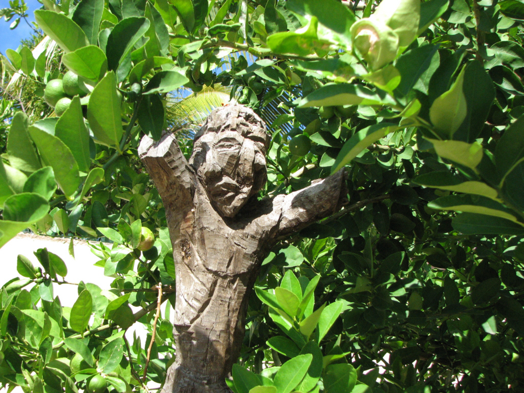 Jesus Figur aus einem Baumstamm geschnitzt