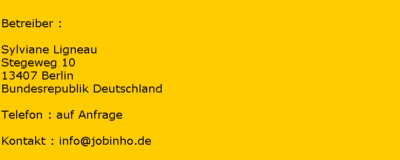 Inhalt und Struktur dieser Websites sind urheberrechtlich geschützt. Die Vervielfältigung von Informationen oder Daten, insbesondere die Verwendung von Texten oder Bildmaterial bedarf der vorherigen Zustimmung von www.jobinho.de